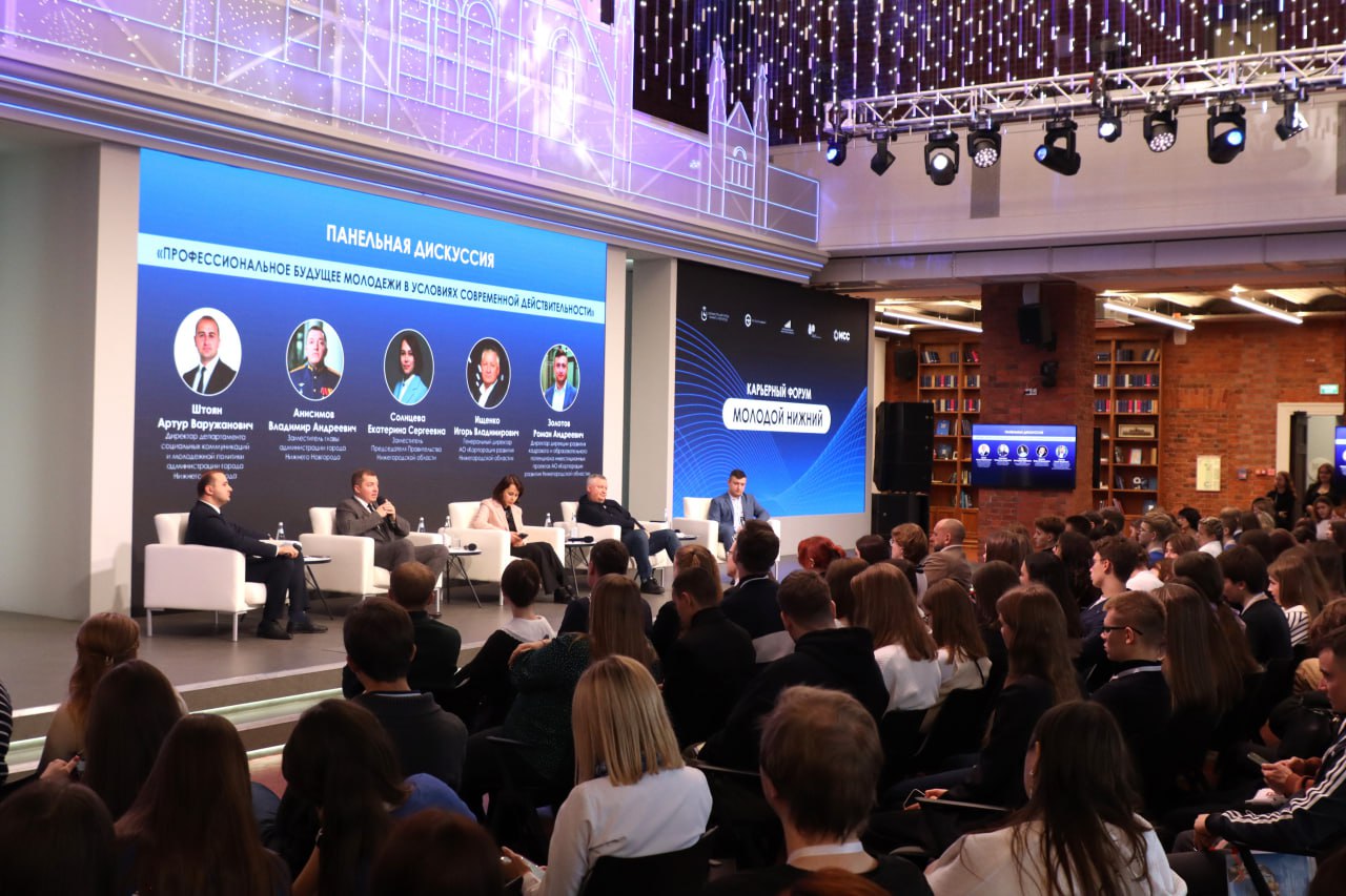 Открылся форум панельной дискуссией «Профессиональное будущее молодежи в условиях современной действительности», на которой участники вместе с работодателями и представителями власти обсудили вопросы реализации профессионального потенциала молодёжи на предприятиях и организациях Нижнего Новгорода и области.
